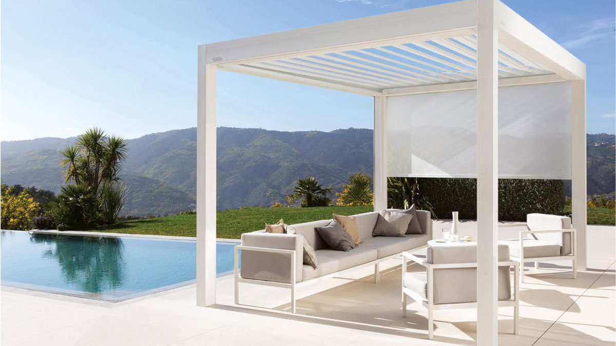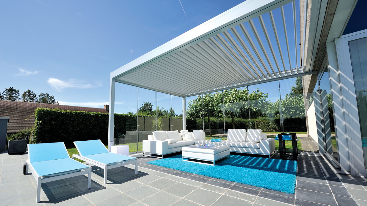 Die B720 ist ein innovatives Konzept von Brustor, das weiterentwickelt wurde, um neue Möglichkeiten für die Terrassenüberdachung der Zukunft zu schaffen. Die Kombination aus einem festen Dach und einem Lamellendach macht dies möglich. Für den festen Dachbereich können Sie zwischen Paneelen aus Glas, Polycarbonat oder Sandwichpaneelen wählen. Der zweite Teil des Daches besteht aus kippbaren XL-Lamellen vom B200XL.